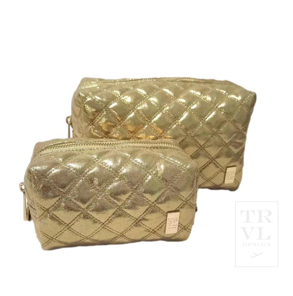 Cosmetic Bag Set- Luxe Duo Dome Set - Quilted Gold